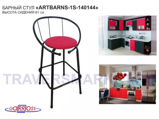 "ARTBARNS 1S-117186" cтул барный, табурет,спинка, высота 0,61м, 22мм,красные ножки/жёлтый верх ткань