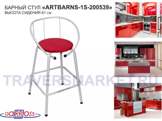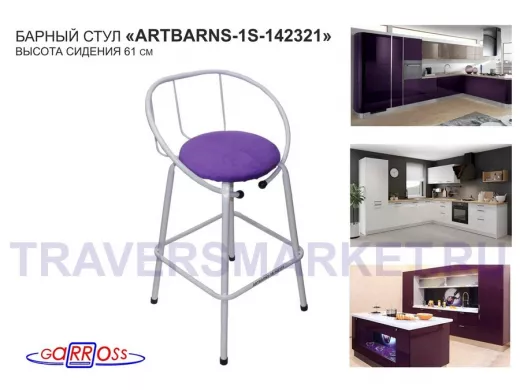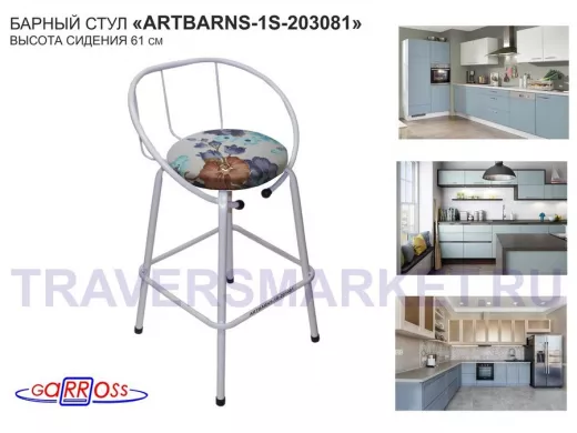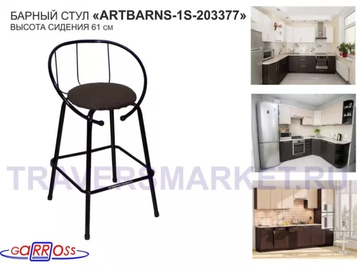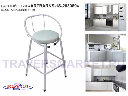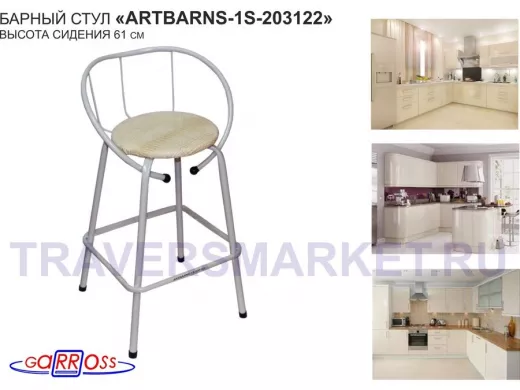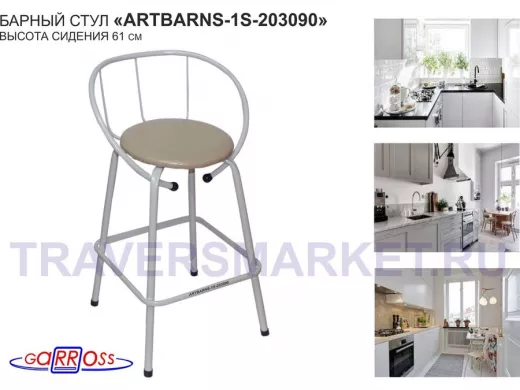 "ARTBARNS 1S-195193" cтул барный, табурет, спинка, высота 0,61метра, 22мм,серые ножки/Вольт 01 ткань
