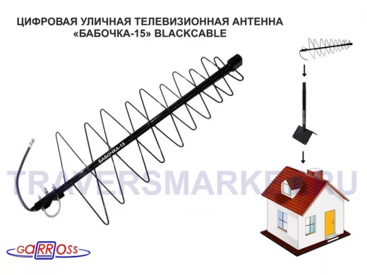 "БАБОЧКА-15А-5ВОЛЬТ" АКТИВНАЯ ЧЁРНАЯ уличная ТВ антенна с усилителем DVB-T2, питание 5В от приёмника