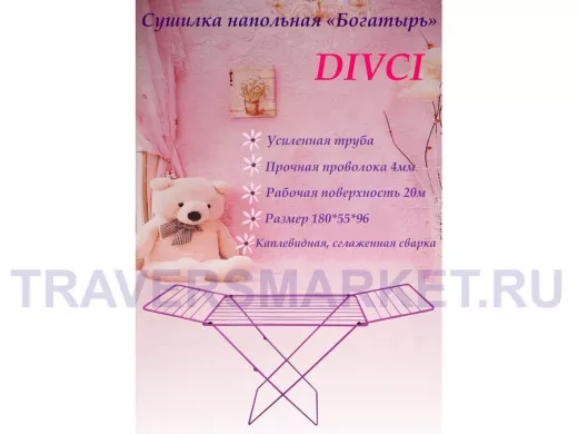 - "БОГАТЫРЬ" DIVCIсушилка напольная РОЗОВАЯ 20 метров, предназначена для сушки белья