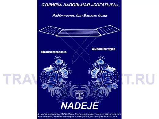 - "БОГАТЫРЬ" NADEJE сушилка напольная СИНЕ-БЕЛАЯ 20 метров, предназначена для сушки белья