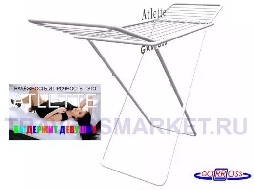 В корзину Купить в 1 клик "ATLETTE-81296" сушилка напольная белая, ВЫДЕРЖИТ ДЕВУШКУ труба 22мм, проволока 5мм, до 50кг