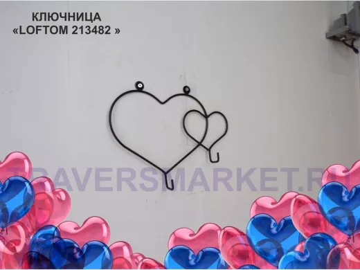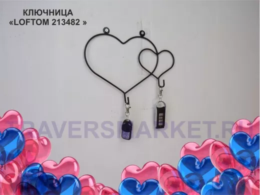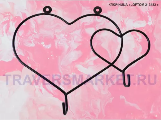 Заказать звонокКлючница с магнитиком для записки, вешалка в прихожую, два сердца, чёрный "ABILOVE 213482"