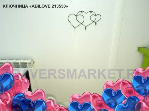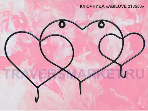 Заказать звонокКлючница, держатель полотенец, вешалка в прихожую, три сердца с крючками, чёрный "ABILOVE 213550"