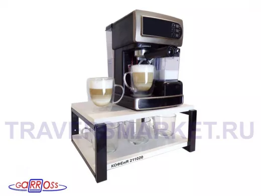 Заказать звонокПолка под кофемашину к стене, высота 17см, черный каркас "КОФЕиЯ 211020" полки 30х40см, сосна