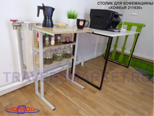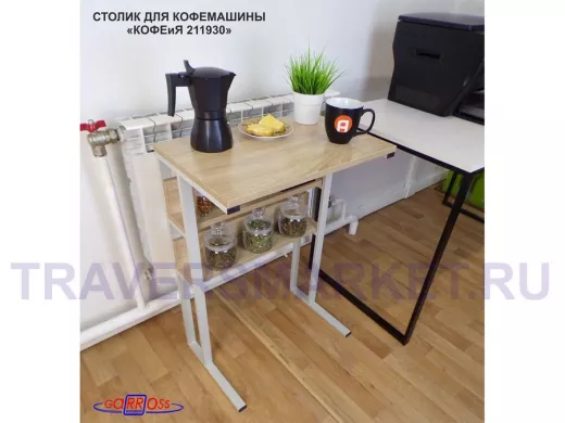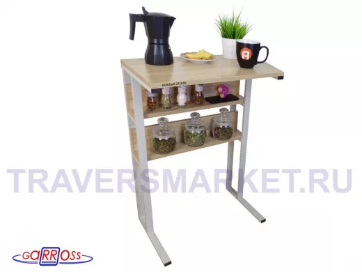 Заказать звонокСтолик для кофемашины "КОФЕиЯ 211930" высота 79 см с двумя полками для стаканов и банок, серый, дуб