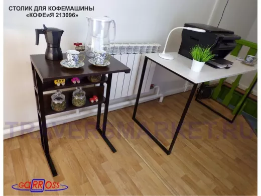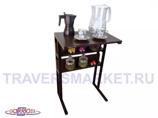 Заказать звонокСтолик для кофемашины "КОФЕиЯ 213096" высота 79см с двумя полками для стаканов и банок, черный,венге