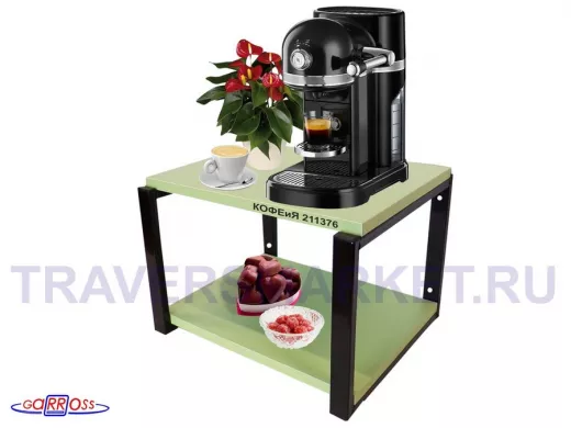 Заказать звонокПолка под кофемашину к стене, высота 27см, черный каркас "КОФЕиЯ 211376" полки 30х40см,салатовый