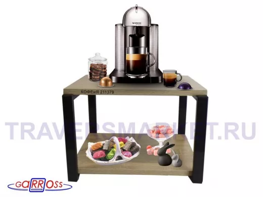 Заказать звонокПолка под кофемашину к стене, высота 27см, черный каркас "КОФЕиЯ 211379" полки 30х40см, дуб