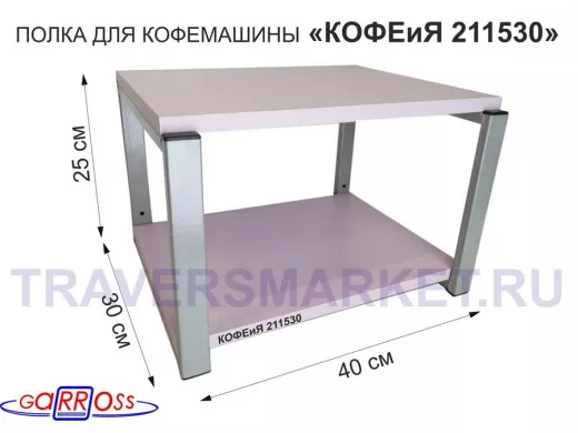 Заказать звонокПолка под кофемашину к стене, высота 27см, серый каркас "КОФЕиЯ 211530" полки 30х40см, лаванда