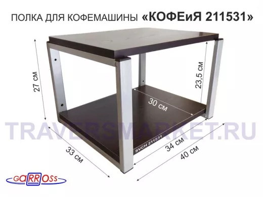 Заказать звонокПолка под кофемашину к стене, высота 27см, серый каркас "КОФЕиЯ 211531" полки 30х40см, венге