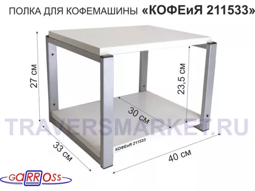 Заказать звонокПолка под кофемашину к стене, высота 27см, серый каркас "КОФЕиЯ 211533" полки 30х40см, сосна