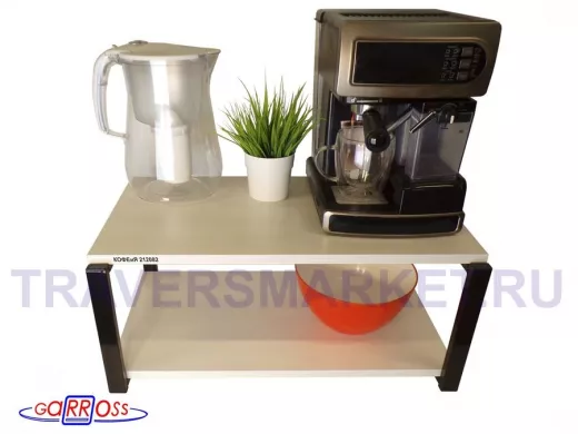 Заказать звонокПолка под кофемашину к стене, высота 27см, черный каркас "КОФЕиЯ 212082" полки 30х60см,сосна