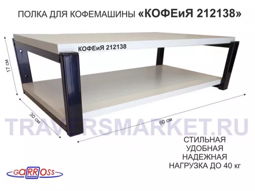 Заказать звонокПолка для кофемашины, черная "КОФЕиЯ 212138" высота 17 см, полки 30х60 см, сосна выбеленная,2 ур