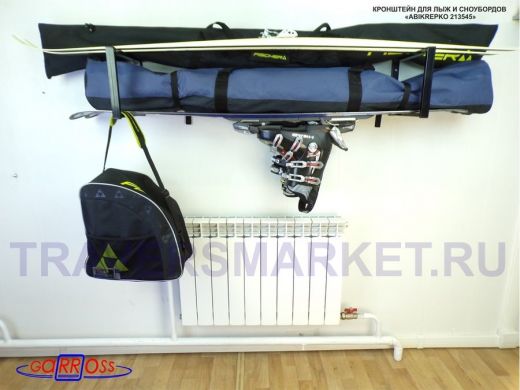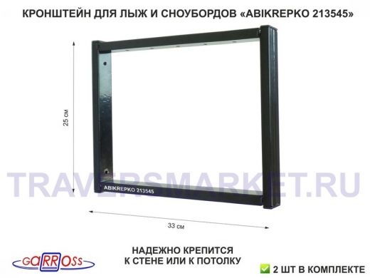 Кронштейны для лыж и сноубордов к стене, потолку, чёрный "ABIKREPKO 213545" 33х25см, 2шт в комплекте