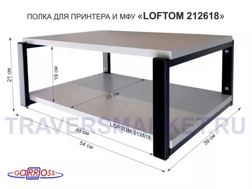 Полка для принтера, подставка для МФУ, 21см черный "LOFTOM 212618" две полки 35х54см, сосна выбелен.