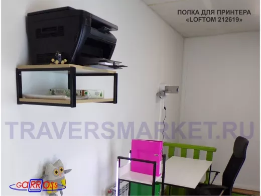 Полка для принтера, подставка для МФУ, 21см черный "LOFTOM 212619" две полки 35х54см, дуб сонома
