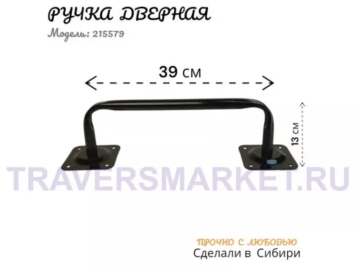 Ручка дверная стальная большая высота 13 см ширина 39 см "LOFTOM 215579" чёрная