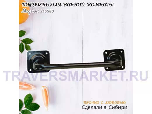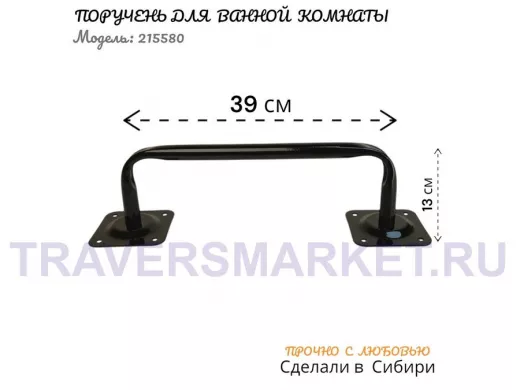 Поручень для туалета и ванной комнаты к стене высота 13 см ширина 39 см "LOFTOM 215580" чёрный