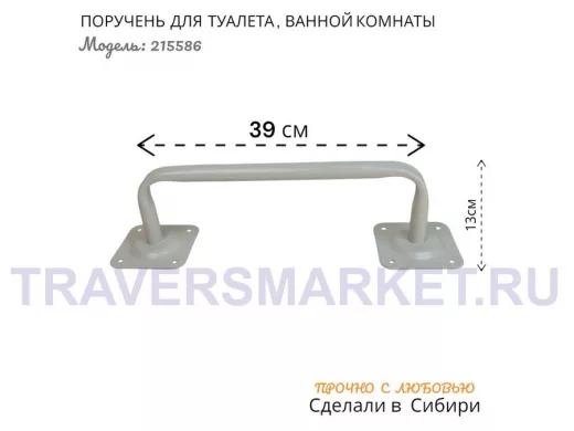 Заказать звонокПоручень для туалета и ванной комнаты к стене высота 13 см ширина 39 см "LOFTOM 215586" серый