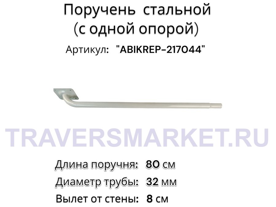 В корзину Купить в 1 клик Поручень пристенный для зданий, длина 80см вылет 8см "ABIKREP-217044" серый, 1 опора, диаметр 32мм