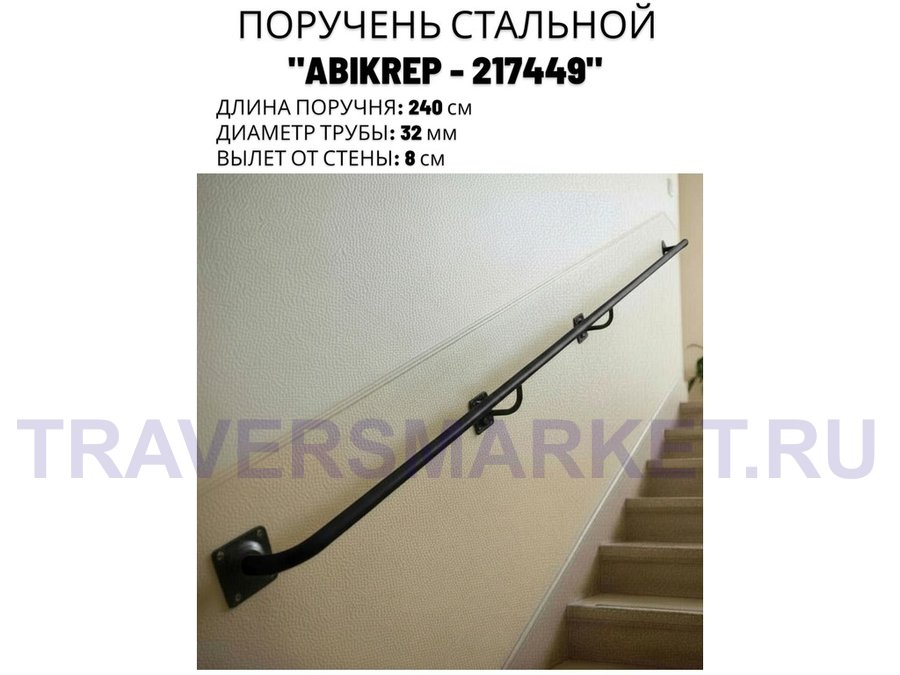 Поручень пристенный для зданий, длина 240см вылет 8см "ABIKREP-217449" черный, 4 опоры, диаметр 32мм