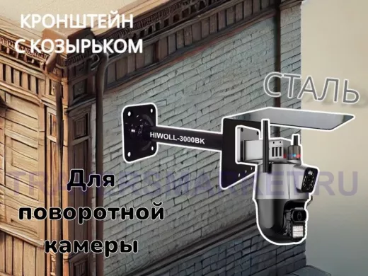 Заказать звонокКронштейн для поворотной камеры с вылетом 25см и козырьком для защиты "HIWOLL-216162" черный, сталь