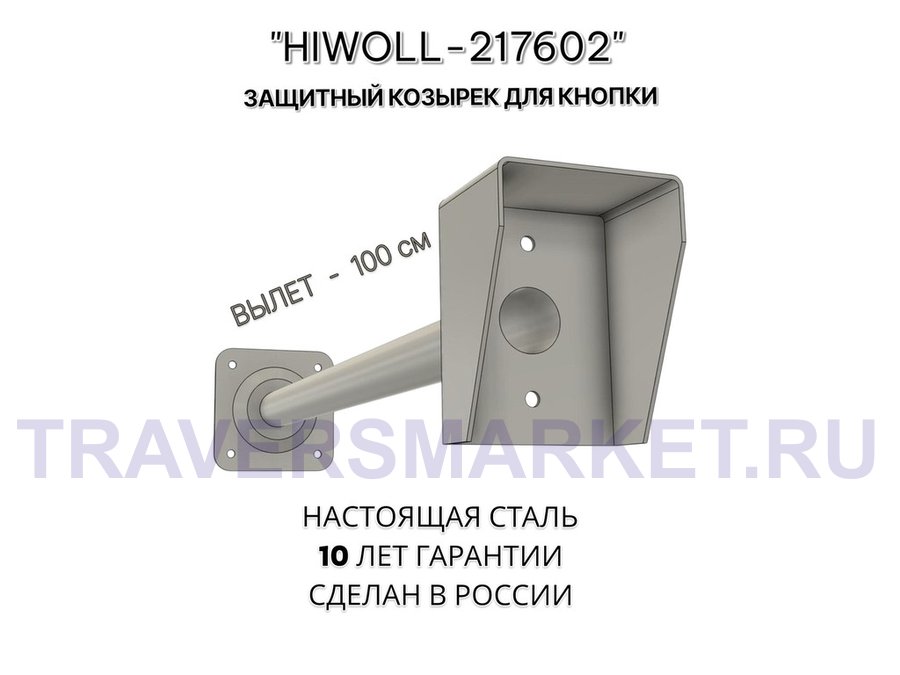 Стальной защитный козырек для кнопок выхода с вылетом от стены 100см "ВЫЗОВКРЕП-217602" серый,8х11см