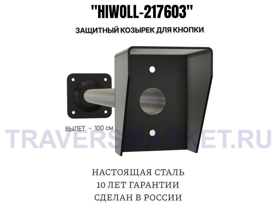 Стальной защитный козырек для кнопок выхода с вылетом от стены 100см "ВЫЗОВКРЕП-217603"черный,8х11см