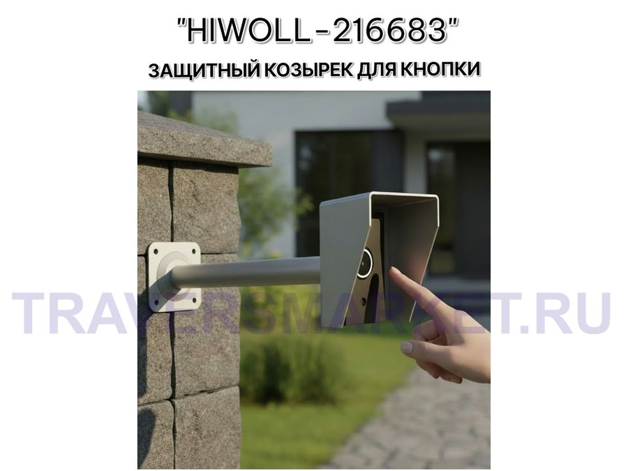 Заказать звонокСтальной защитный козырек для кнопок выхода с вылетом от стены 25см "HIWOLL 216683" серый, 8х11см