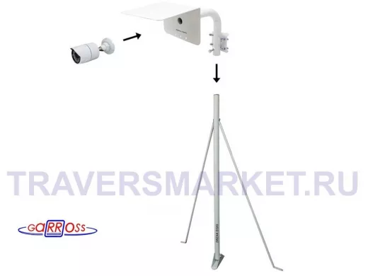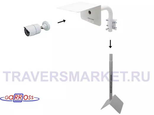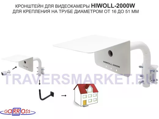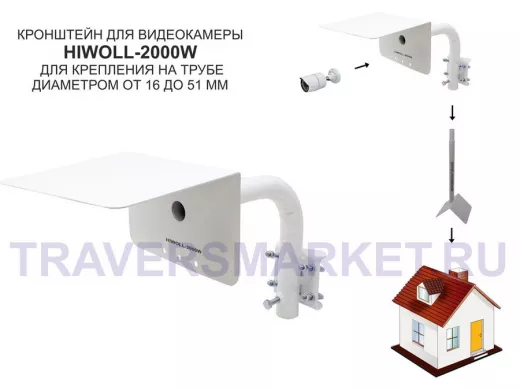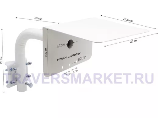 Заказать звонокКронштейн "HIWOLL-2000W-199090" белый с хомутами и козырьком на мачту для видеокамеры и прожектора