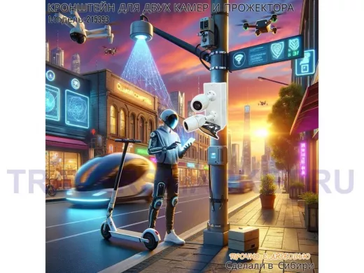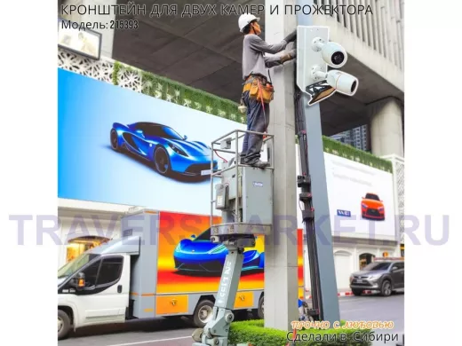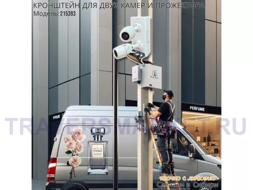 Заказать звонокКронштейн для двух камер и прожектора на столб белый "IPAHD-201W-215393" под СИП-ленту, вылет 80мм
