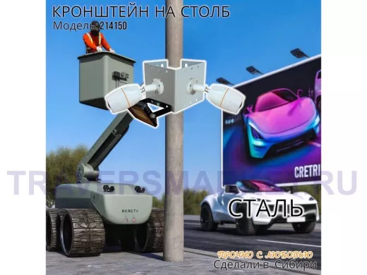- Кронштейн для двух камер и прожектора, крепится при помощи СИП ленты монтажной на квадратный или круглый столб.