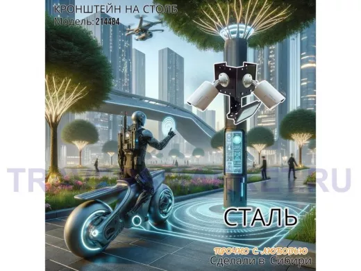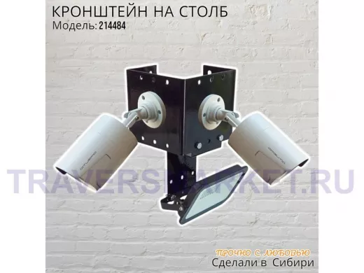 - Кронштейн для двух камер и прожектора, крепится при помощи СИП ленты монтажной на квадратный или круглый столб.