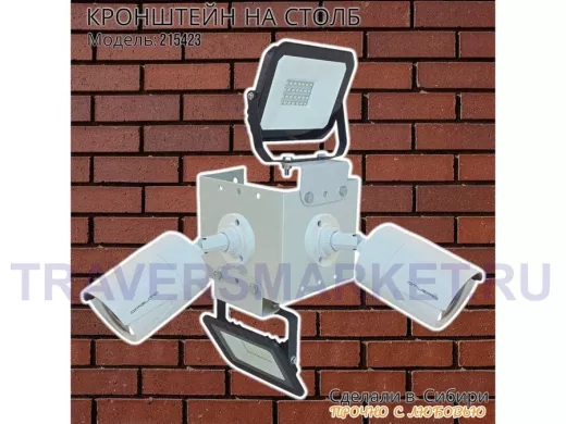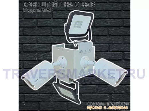 - Кронштейн для двух камер и прожектора, крепится при помощи СИП ленты монтажной на квадратный или круглый столб.