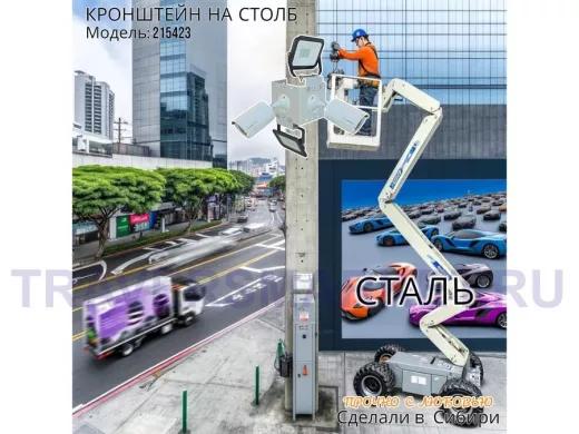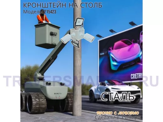 - Кронштейн позволяет быстро зафиксировать камеры видеонаблюдения или прожектор на столбе, не сверля его.