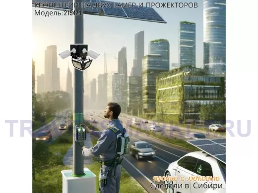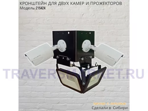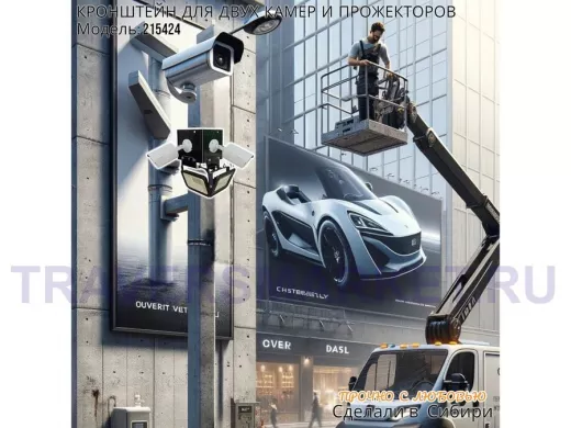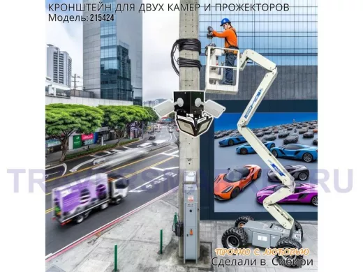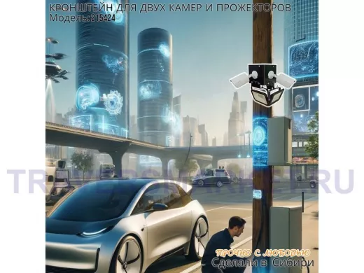 - Кронштейн для двух камер и прожектора, крепится при помощи СИП ленты монтажной на квадратный или круглый столб.