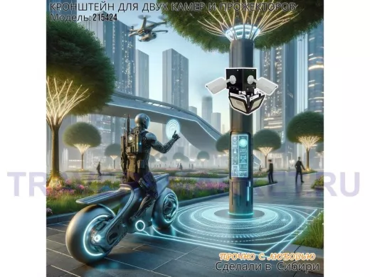 Заказать звонокКронштейн для двух камер и прожекторов на столб черный с уголками "IPAHD-5-215424" под СИПленту