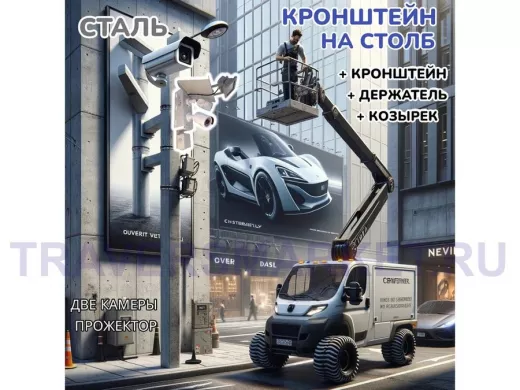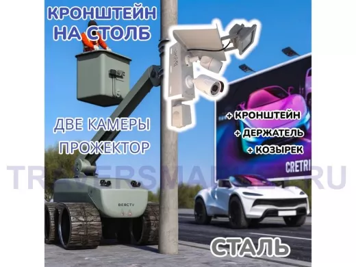 Заказать звонокКронштейн для двух камер и прожектора на столб с козырьком и пластиной серый "IPAHD-5-214548"