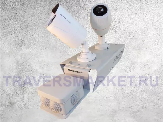 Кронштейн с площадкой под монтажную коробку или прожектор для крепления двух камер на столб при помощи ленты или хомутов