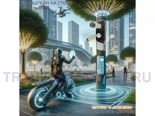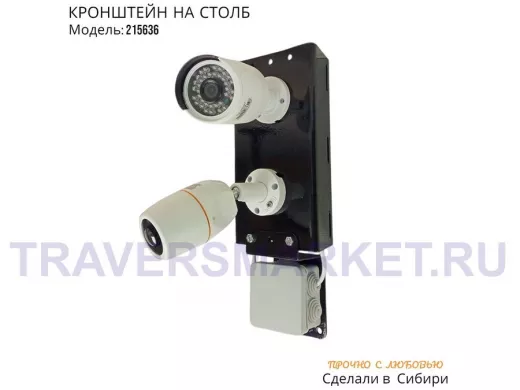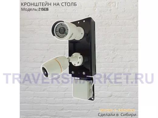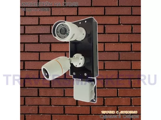 Заказать звонокКронштейн для двух камер и прожектора на столб с пластиной для гермокоробки черный IPAHD-5-215636