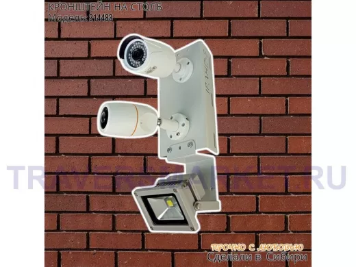 Заказать звонокКронштейн для двух камер на столб с пластиной для прожектора "IPAHD-5-214483" прочная сталь, серый