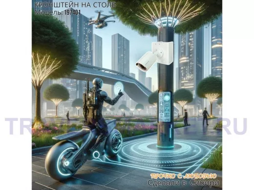 - Кронштейн позволяет быстро зафиксировать камеру и прожектор на столбе, не сверля его.