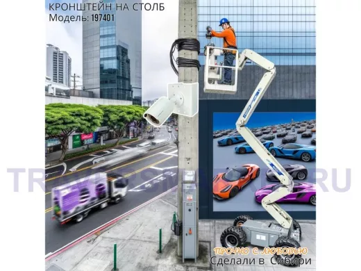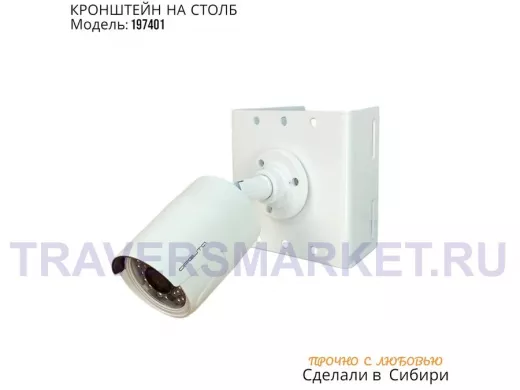 Заказать звонокКронштейн для 1 камеры и прожектора на столб, прочная сталь 2мм белый "IPAHD-101W-197401" под ленту