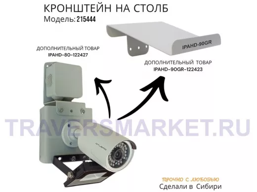 Заказать звонокНабор из 2 шт. Кронштейн для 1 камеры и прожектора на столб серый "IPAHD-101GR-215444" под хомут