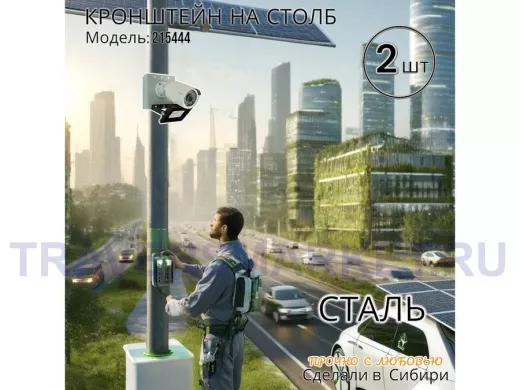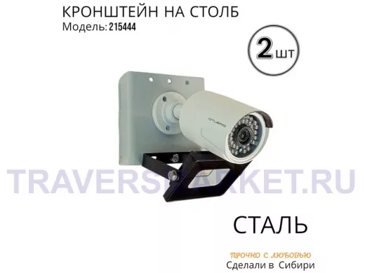 - Кронштейн для 1 камеры и прожектора, крепится при помощи СИП ленты монтажной на квадратный или круглый столб. Подходит для любых камер.