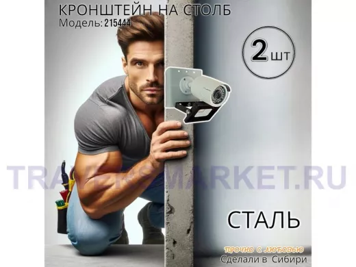 - Кронштейн позволяет быстро зафиксировать камеру и прожектор на столбе, не сверля его.