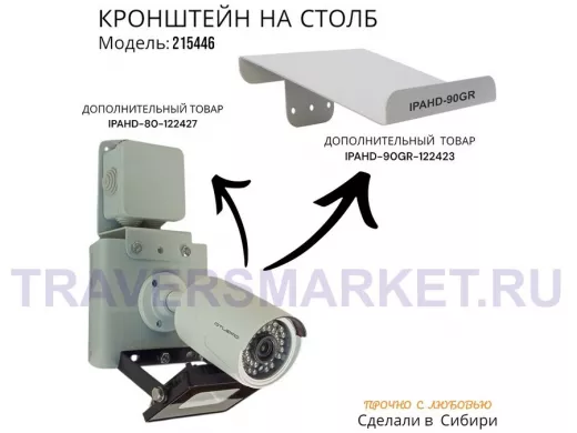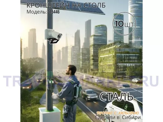 Заказать звонокНабор из 10 шт. Кронштейн для 1 камеры и прожектора на столб серый "IPAHD-101GR-215446" под хомут