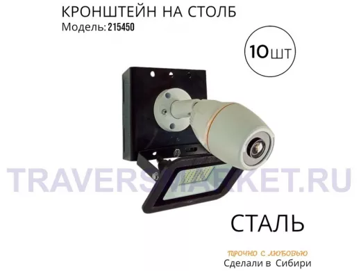 - Кронштейн позволяет быстро зафиксировать камеру и прожектор на столбе, не сверля его.