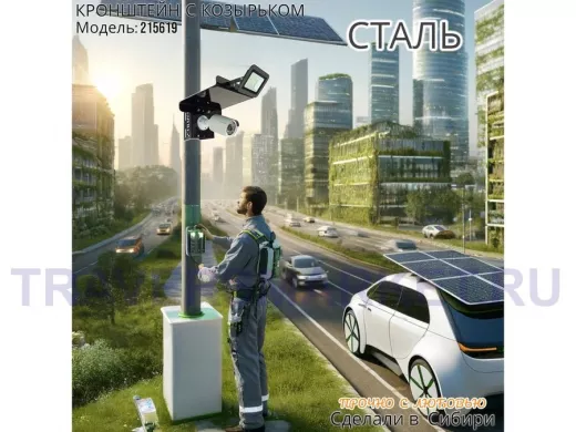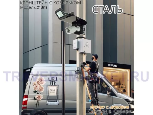 Заказать звонокКронштейн для камеры и прожектора на столб с козырьком вверх черный "IPAHD-5-215619"